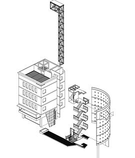 대건(DG.)빌딩은 이러한 공유성이 부여된 계단과 외부에서 내부로 직접 통하는 8개의 출입문이 있는 건물로서 벽으로 둘러싸인 허실(虛室)을 옥상에 지닌 임대용 근린생활 시설이다.